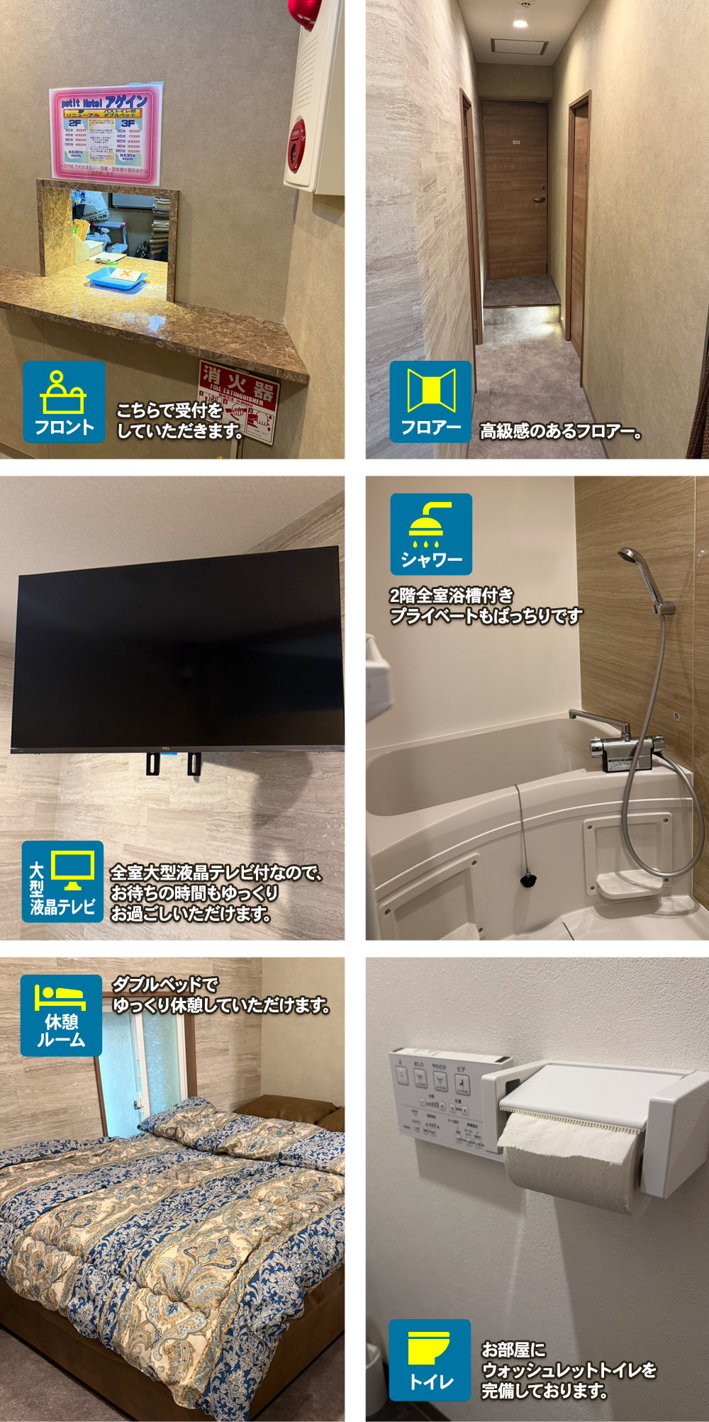 全室にエアコン・個室シャワー・テレビ・DVDプレイヤーも完備。